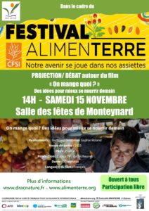 Dans le cadre du Festival Alimenterre, l’association Drac Nature vous propose une projection du film « On mange quoi ? » suivi d’un échange/ débat